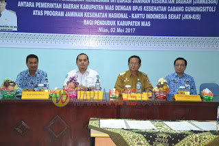 Nias – Pemerintah Kabupaten (Pemkab) Nias pada tahun 2017 Membiayai iuran Jaminan Kesehatan Masyarakat (Jamkesmas) sebanyak 28.985 jiwa penduduk Kabupaten Nias. Hal itu disampaiakan Bupati Nias, Sokhiatulo Laoli dalam acara penandatanganan perjanjian kerjasama integrasi jaminan kesehatan daerah (Jamkesda) Pemkab Nias dengan BPJS Kesehatan Cabang Gunungsitoli atas program Jaminan Kesehatan Nasional - Kartu Indonesia Sehat (JKN - KIS) bertempat di ruang rapat kantor Bupati Nias Lantai I, Selasa (02/05/2017)