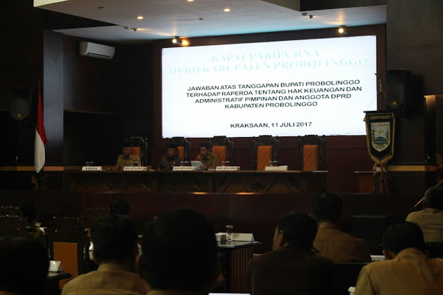 Probolinggo,KraksaanOnline.com – Fraksi-fraksi DPRD Kabupaten Probolinggo, Selasa (11/7/2017) siang memberikan jawaban atas tanggapan Bupati Probolinggo terhadap Rancangan Peraturan Daerah (Raperda) Hak Keuangan dan Administratif Pimpinan dan Anggota DPRD Kabupaten Probolinggo dalam rapat paripurna DPRD Kabupaten Probolinggo.