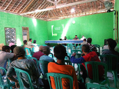 | Para peternak pemilik sapi mengikuti sosialisasi penyakit zoonosis dari mahasiswa KKN UGM di Balaidesa Kebonrejo. (foto: dok-ib) |
