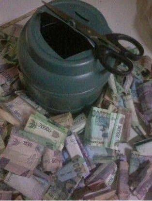 "Selama 1 tahun berhenti merokok dan memutuskan hidup single (tak pacaran). Jatah rokok sehari 15 rb dan uang kencan (pacaran) setiap bulan 300 rb, dimasukin celengan selama 1th gak dibuka. Pas dibuka uangnya ada 8,7 jt 15rb.