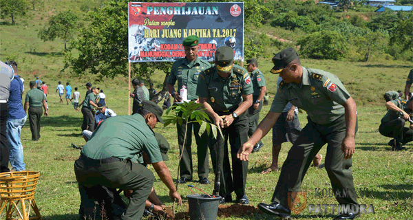 BERITA MALUKU. Dalam rangka memperingati Hari Juang Kartika tahun 2017, Kodam XVI/Pattimura mengadakan penghijauan lingkungan di Puncak Sion, Desa Hatu, Kecamatan Leihitu Barat, Maluku Tengah, dipimpin Komandan Kodim (Dandim) 1504/Ambon, Letkol Inf Roynald Sumendap, dengan tema "Manunggal Dengan Rakyat TNI Kuat."